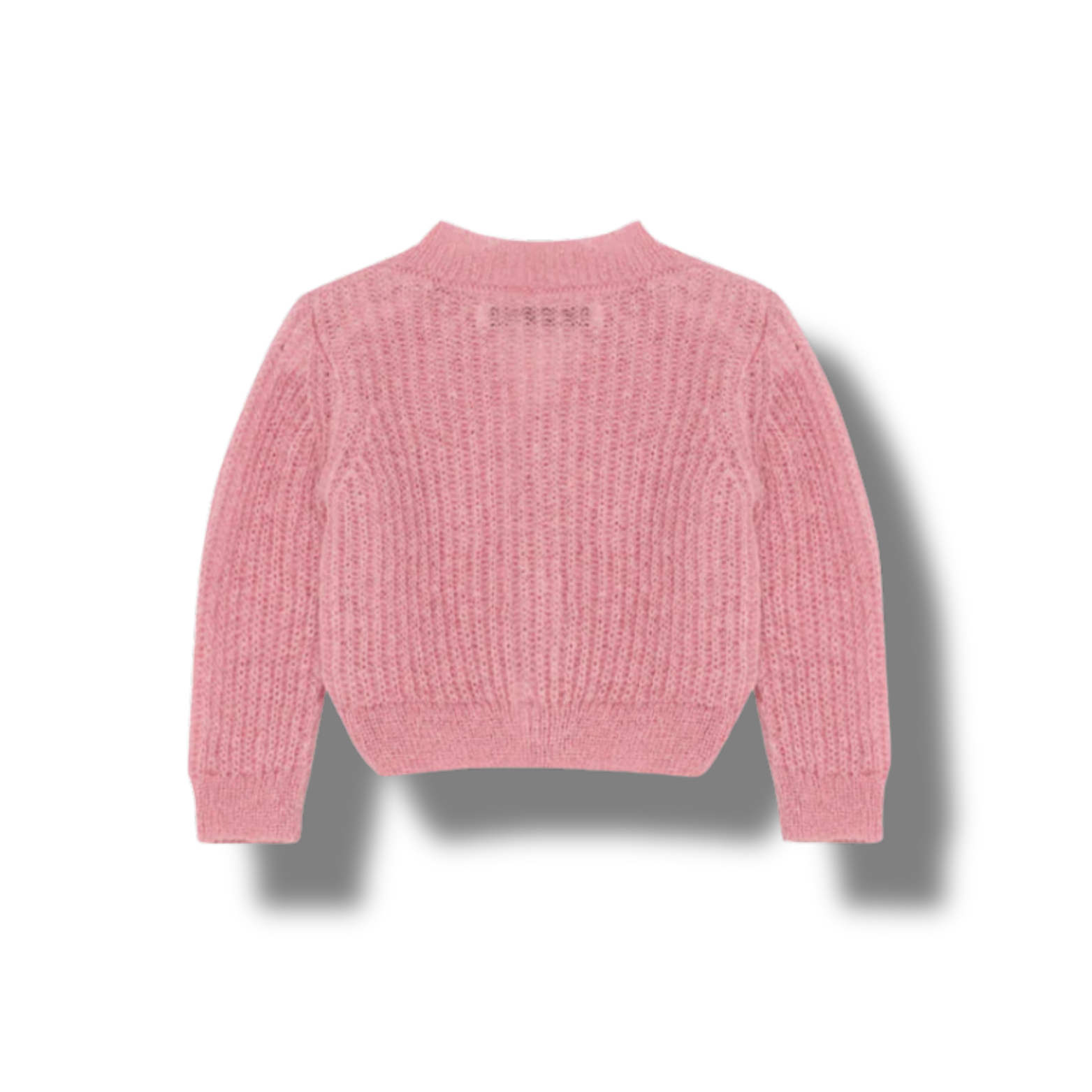 繊細でソフトなリブ編みニットを使用し、軽やかでふんわりとした肌ざわり。40%アクリル・30%モヘア・30%ポリアミドのブレンド素材で、保温性と通気性のバランスが良く、季節を問わず快適に着られます。敏感な赤ちゃんの肌にもやさしく寄り添う一枚です。