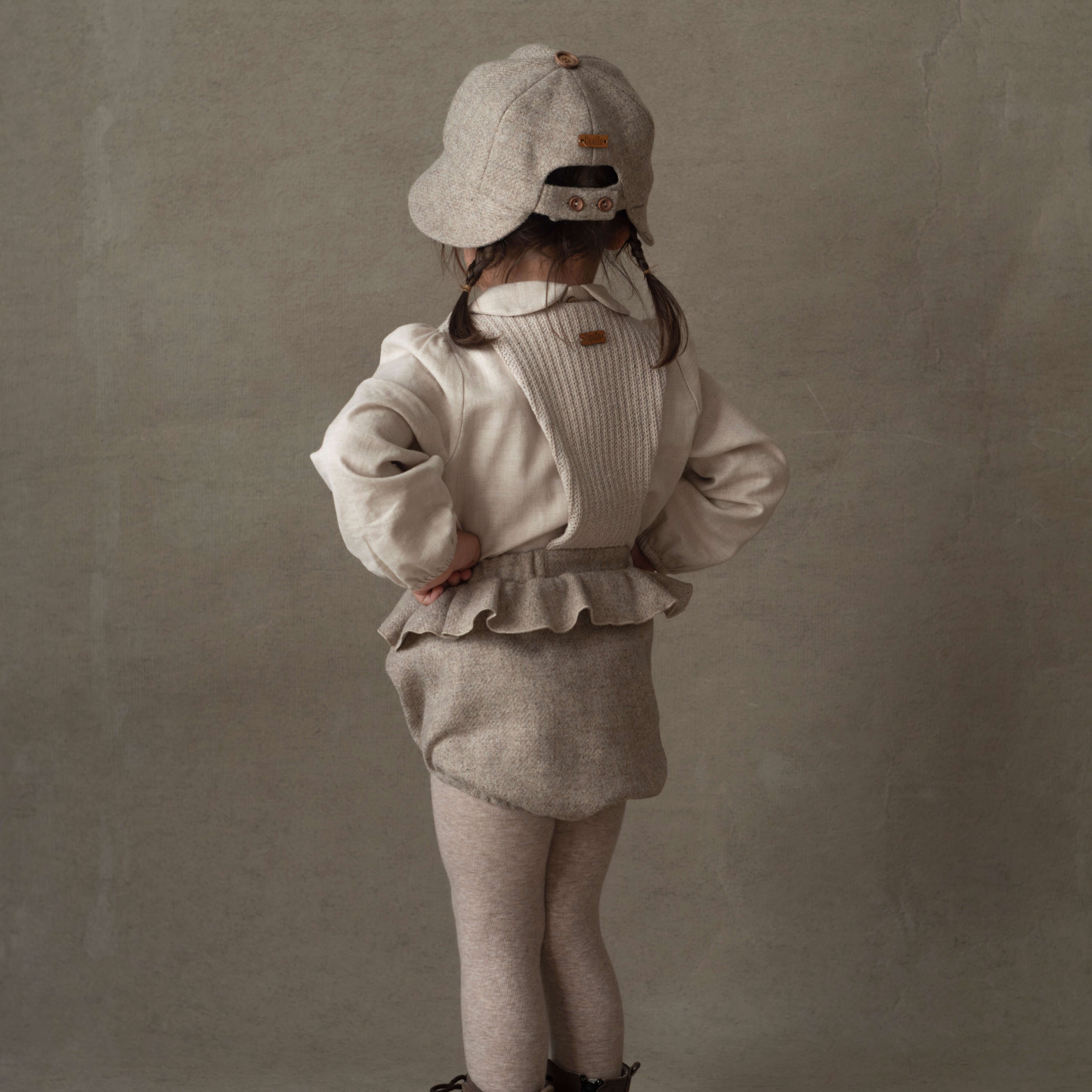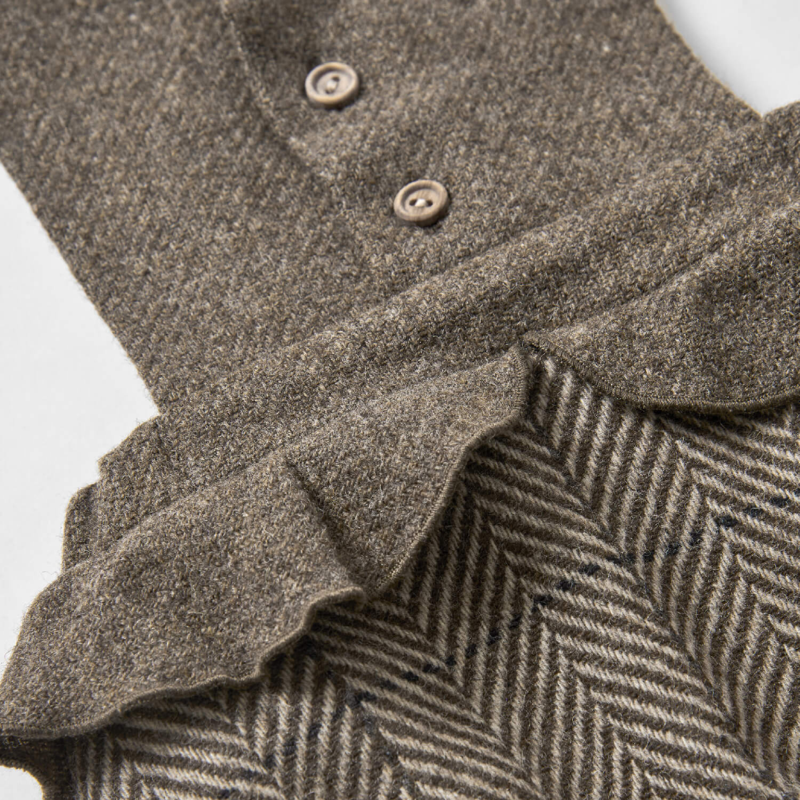 高品質なウールとコットンのコンビネーションは、見た目にも上品でクラシック。特別なお出かけや記念日フォトにもぴったりの一着です。