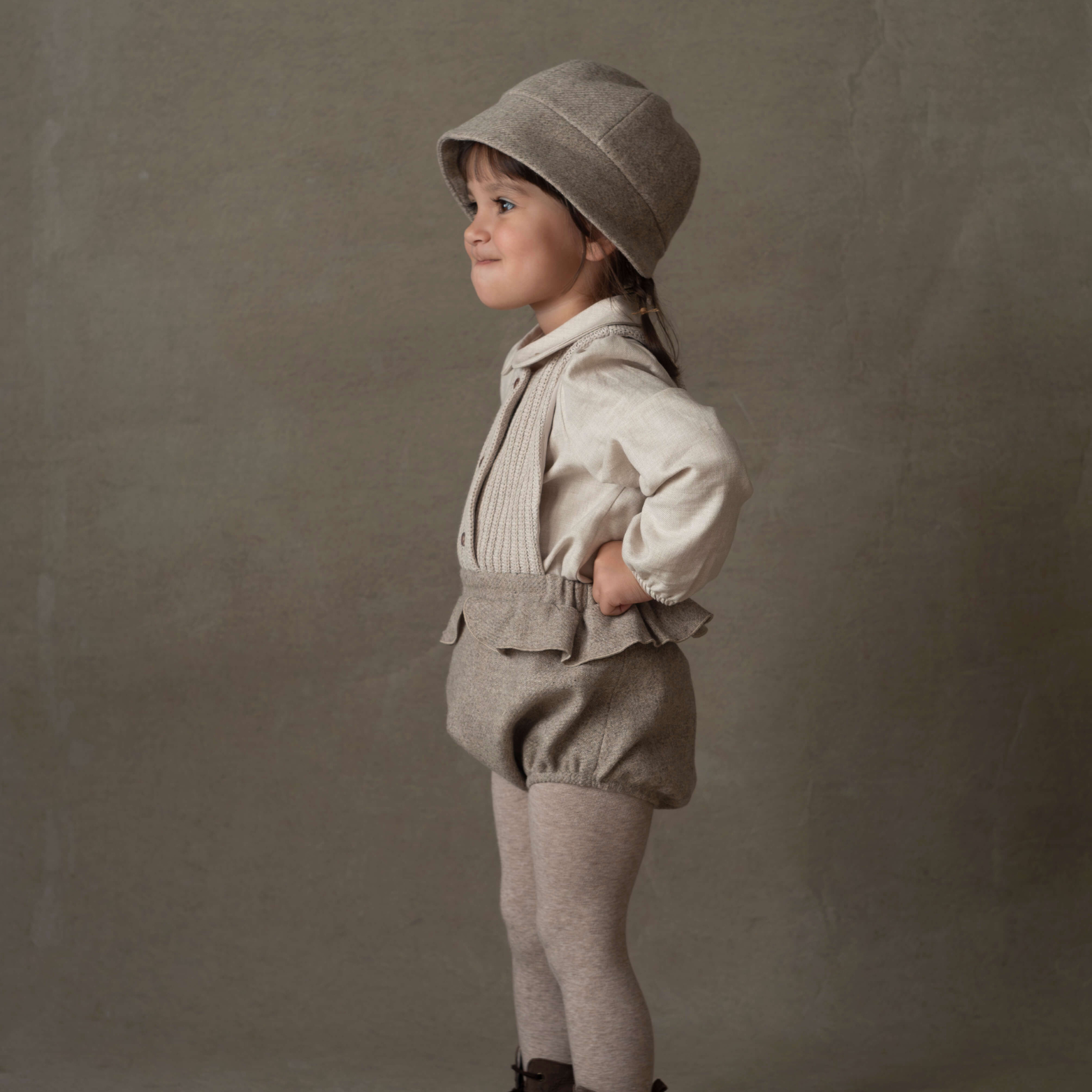 Popelinは、2013年にスペインで誕生した子ども服ブランド。すべてのアイテムをスペイン国内で生産し、天然素材のコットンやリネンを用いて、子どもの肌にやさしい着心地を大切にしています。過去からインスピレーションを受けたヴィンテージの雰囲気と、現代的な実用性を兼ね備え、まるでアート作品のように細部まで丁寧に仕立てられています。フェアトレードとサステナブルなものづくりを大切にし、人権を尊重する姿勢もブランドの根幹です。