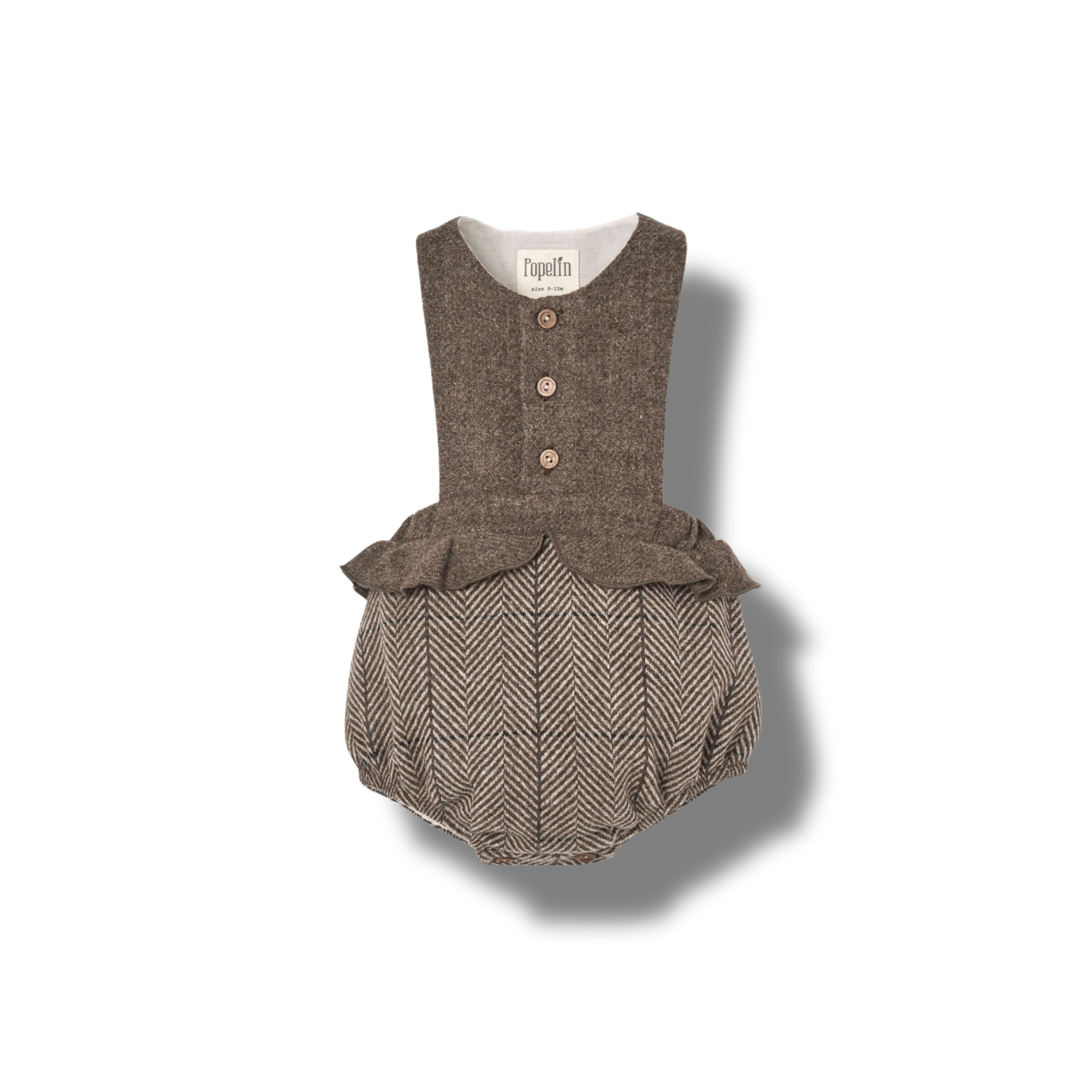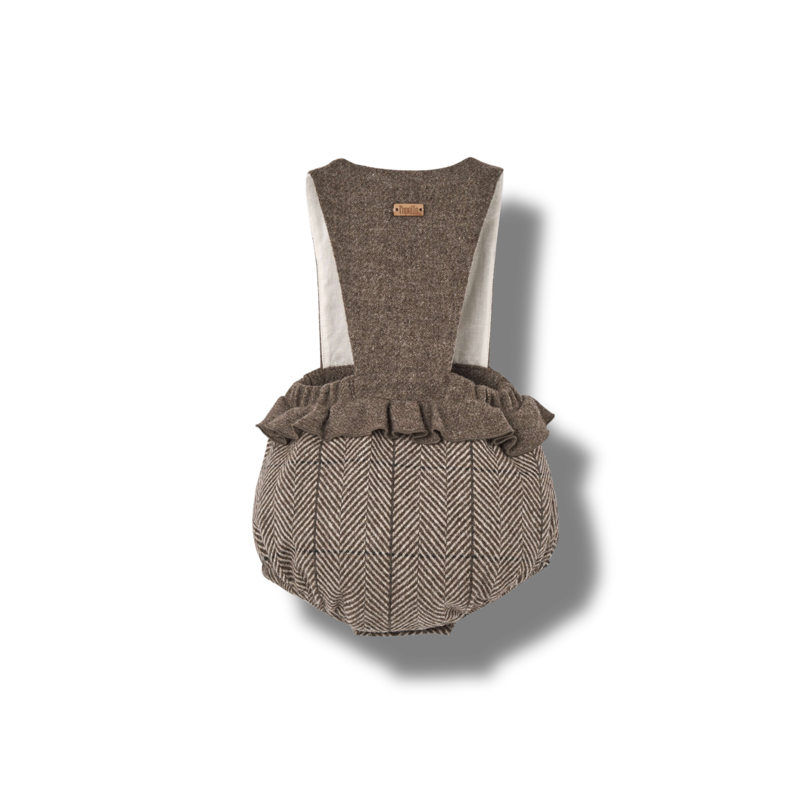 クラシックなビブデザインと上質な素材で仕立てた、特別なロンパース。